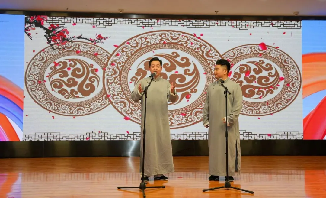 湖北省群众艺术馆优秀青年演员刘雄、湖北省优秀曲艺演员朱冬文表演的相声《笑语欢歌》,普通话、武汉话、黄陂话多种语言自由切换,并用京剧的声腔唱摇篮曲,惟妙惟肖的表演逗得现场观众开怀大笑。