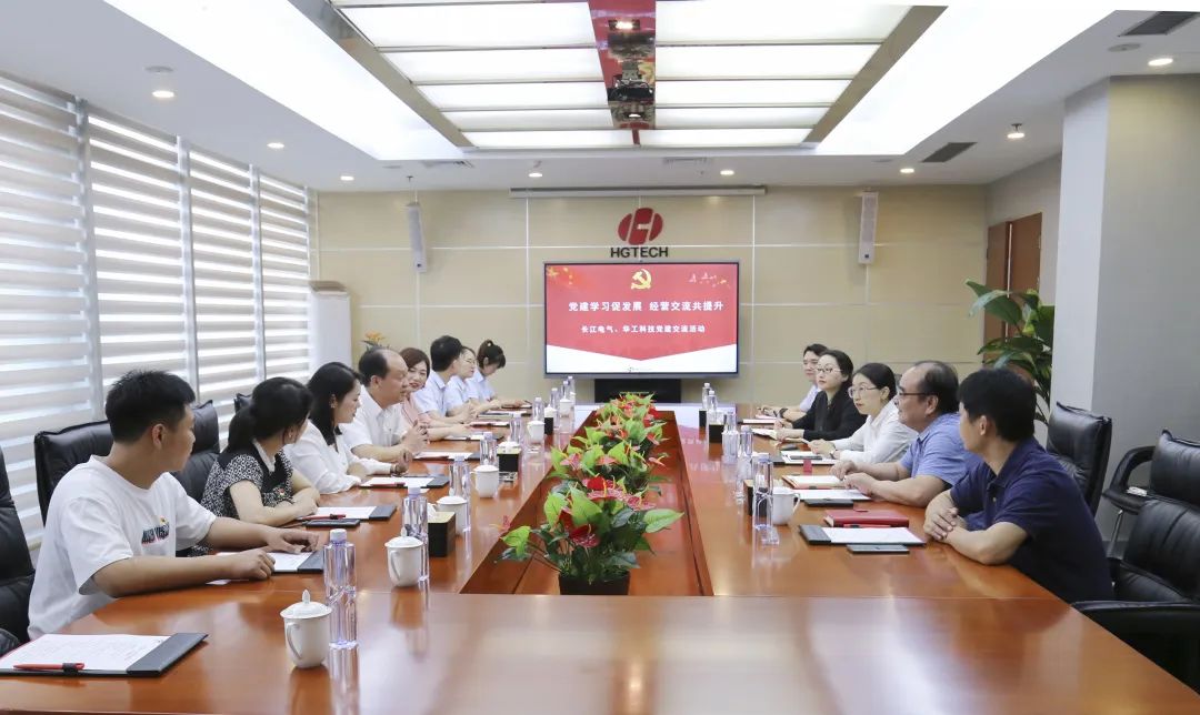 6月24日,长江电气走进华工科技进行党建交流,公司党委委员彭易、创业发展公司第一党支部书记李蒙、总裁邱锋参加此次活动。