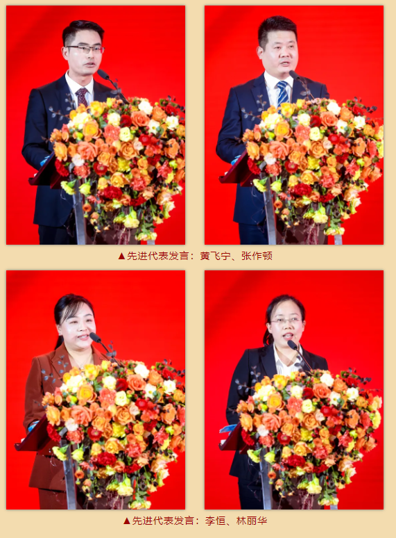 心之所系,行之所至。在先进代表发言环节,“稳健发展”杰出创业家——创业一公司总裁王明城、“科学管理”优秀创业家——创业八公司总裁陈友安、创业标杆处长——创业十七公司总裁王娟(原创业十一公司三处总经理)、创业三公司五处总经理王宏涛,“杰出管理者”——智造公司总裁黄飞宁、工程公司总裁张作顿,“优秀管理者”代表——监察办总经理李恒,“优秀基层管理者”代表——科技中心电气二部主任林丽华,依次作精彩发言,鼓励全体员工争做勇担当、善作为的新时代长电人。