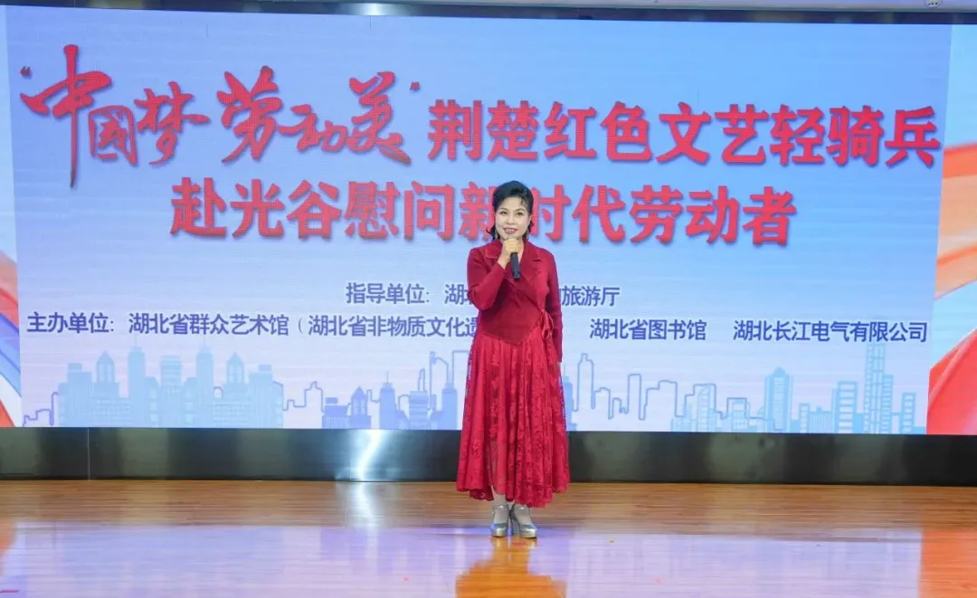 中国梦,劳动美!在“五一”国际劳动节和“五四”青年节来临之际,为弘扬劳动精神,4月29日,由湖北省文化和旅游厅指导,湖北省群众艺术馆(湖北省非物质文化遗产保护中心)、湖北省图书馆联合组织荆楚红色文艺轻骑兵,赴长江电气开展慰问演出。