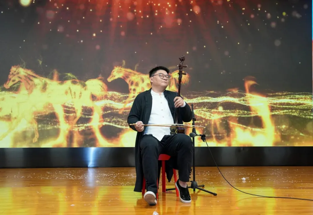 二胡独奏《战马奔腾》气势如虹、大气磅礴,表现了祖国边疆骑兵战士的英勇与顽强,赢得了现场阵阵掌声。