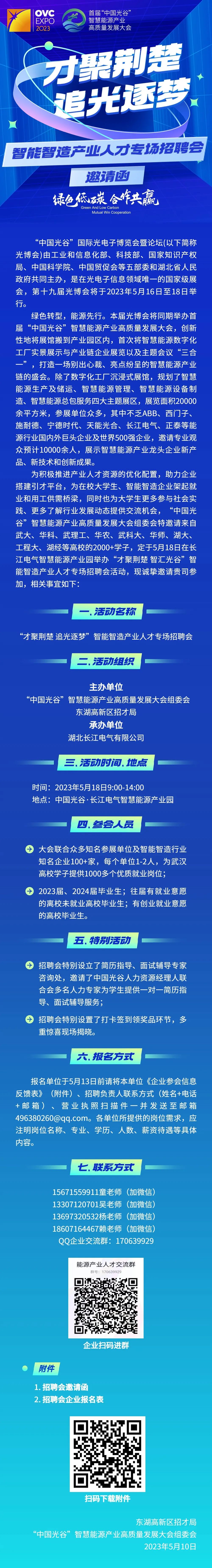 邀请函|“才聚荆楚 追光逐梦”智能智造产业人才专场招聘会邀您参加
