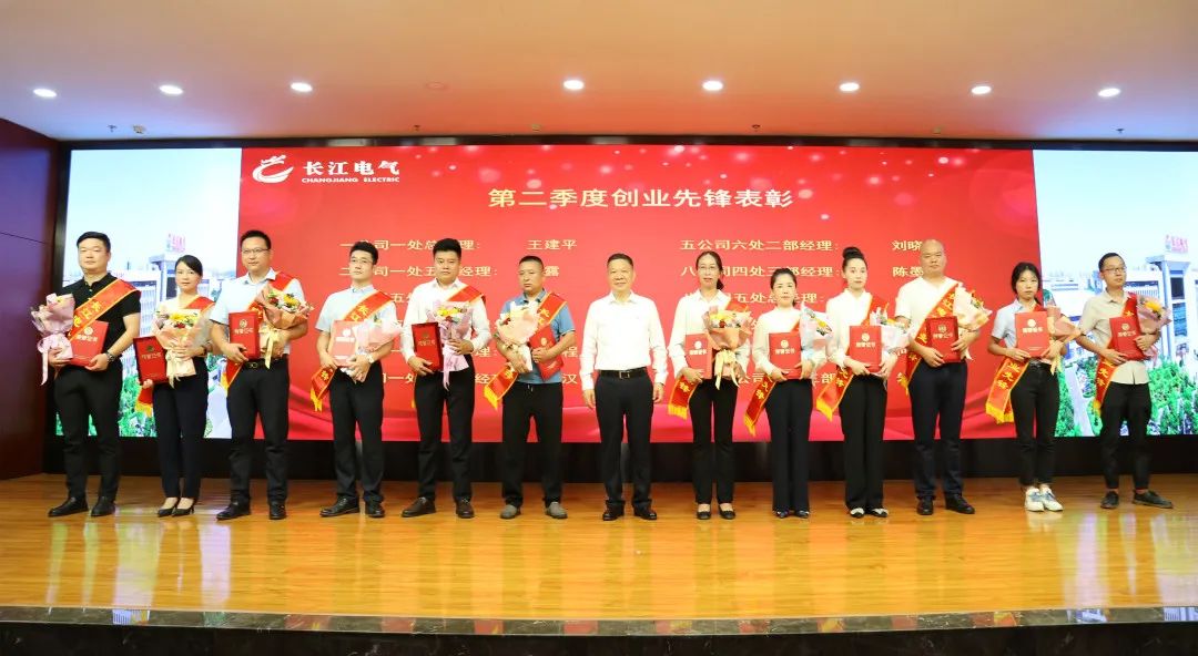 百舸争流,奋楫者先。上半年虽然面临经济下行压力,长江电气创业先锋们,仍意志坚定,逆势而上,奋力拼搏。大会还表彰了创业发展公司2022年第二季度12位订单过千万元创业先锋,创业一公司王建平总经理、创业二公司邱露经理、创业四公司唐鹏程经理、创业九公司吴立明经理四位80、90后创业家作为创业先锋代表,分享了他们“百折不挠,敢为人先”的创业故事。