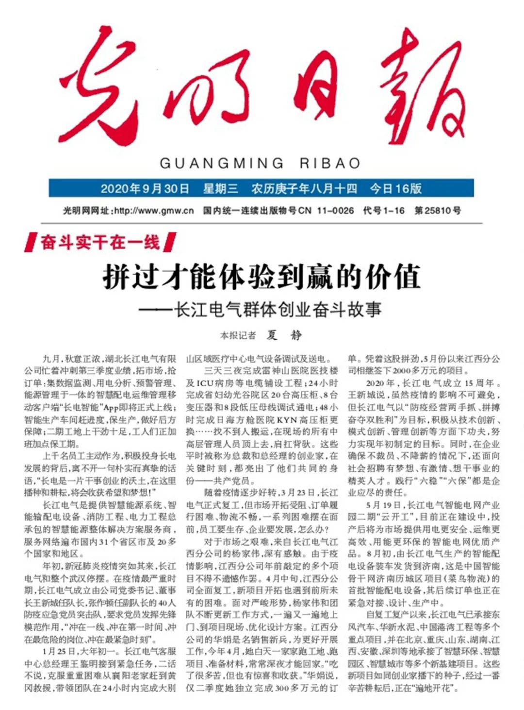 奋斗实干在一线|《光明日报》专栏聚焦长江电气群体创业家奋斗故事
