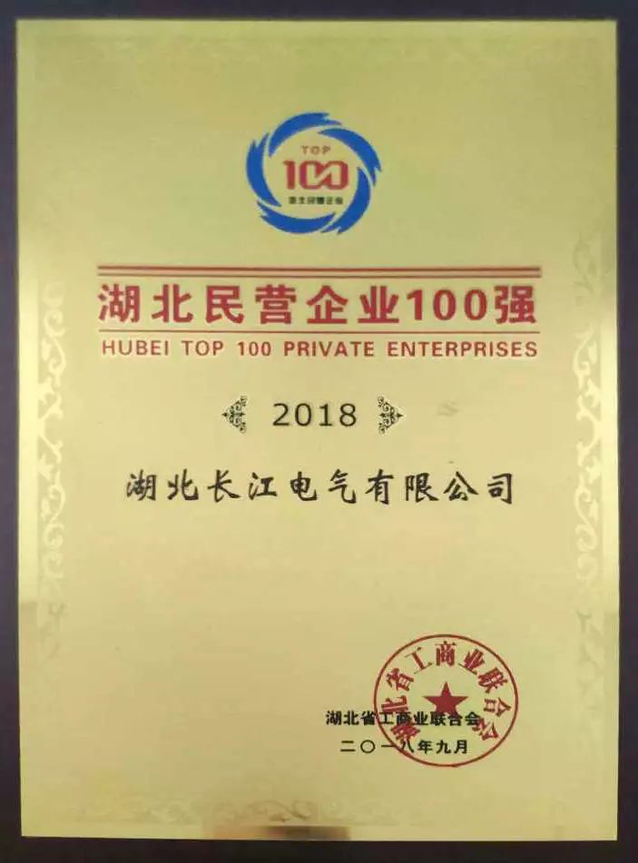 △长江电气荣膺“2018湖北民营企业100强”称号